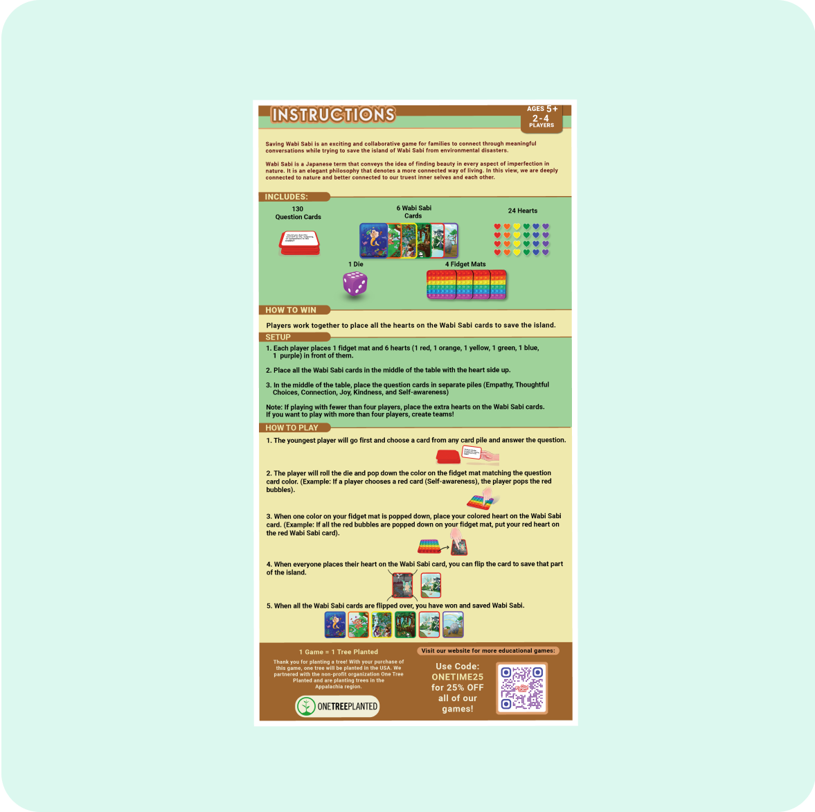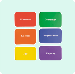 Essentially these are conversation cards turned into a game and the co-operative nature of the game adds another layer to it. I've also pulled out the cards by themselves and used them as conversation starters with my kids here and there but outside of the game they sometimes ask me "Why are you asking..?" The fidget poppers as counters is brilliant but I have to hunt them down every now and then because the kids can and will play with them outside of the game. The cards being divided by topic (Self-awareness, empathy, thoughtful choices, connection, kindness, and joy) is helpful. I find the joy questions the most fun to ask the kids.